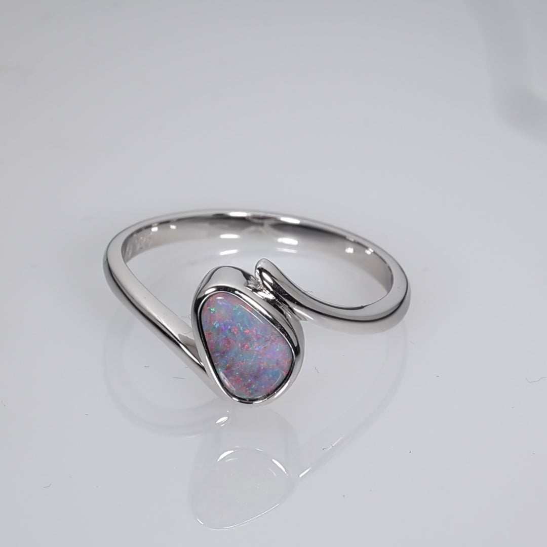 Opal Origin : Quilpie, Australia. The opal is cut and polished in Australia by Smart Opals. 925 Sterling Silver setting, rhodium plated.